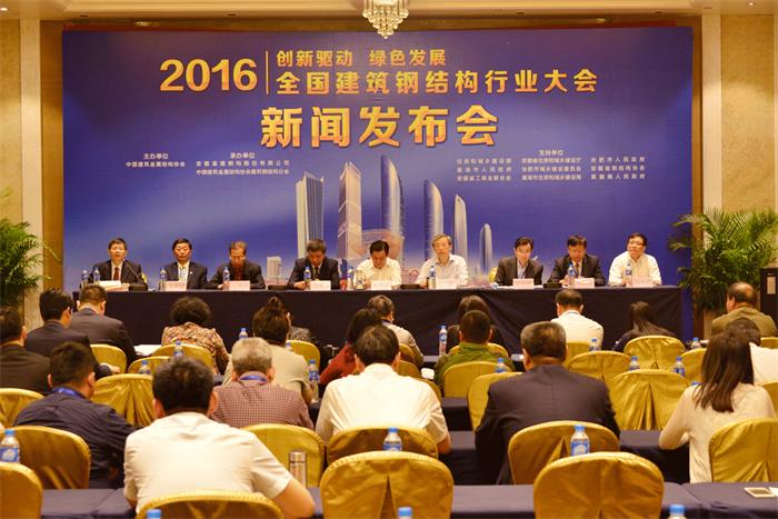 5月14日上午,以“創(chuàng)新驅(qū)動、綠色發(fā)展”為主題的2016全國建筑鋼結構行業(yè)大會新聞發(fā)布會在安徽合肥隆重舉行。本次發(fā)布會圍繞我國鋼結構行業(yè)如何通過創(chuàng)新驅(qū)動推動鋼鐵行業(yè)除產(chǎn)能、去庫存以及企業(yè)如何發(fā)展以鋼結構和裝配式建筑為代表的綠色建筑等熱點問題展開。包括人民日報、新華社、中國建設報、科技日報、中國財經(jīng)報、中國冶金報、中國房地產(chǎn)報、建筑時報、安徽日報、合肥日報、證券時報、證券日報、上海證券報、中國證券報、合肥市電視臺、巢湖電視臺、新浪網(wǎng)、搜狐網(wǎng)、騰訊網(wǎng)、鳳凰網(wǎng)等多家媒體受邀參加了由主辦方召開的新聞發(fā)布會。鋼結構行業(yè)內(nèi)的代表性企業(yè)中建鋼構、精工鋼構、東南網(wǎng)架、杭蕭鋼構、富煌鋼構等企業(yè)領導人出席并回答了記者們關注的問題。